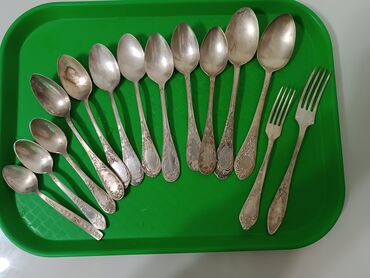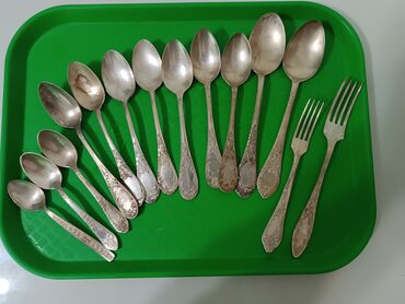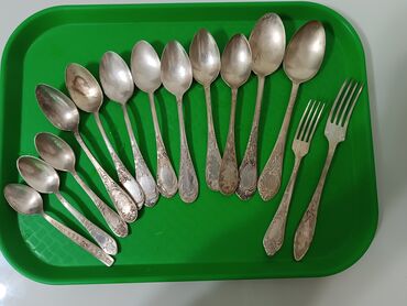 - ложки столовые — 9 шт. (разные формы чаши, удлинённые ручки с орнаментом);