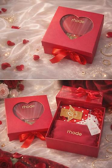 - Подарочная коробка rhode с прозрачным окном в форме сердца и бантом.