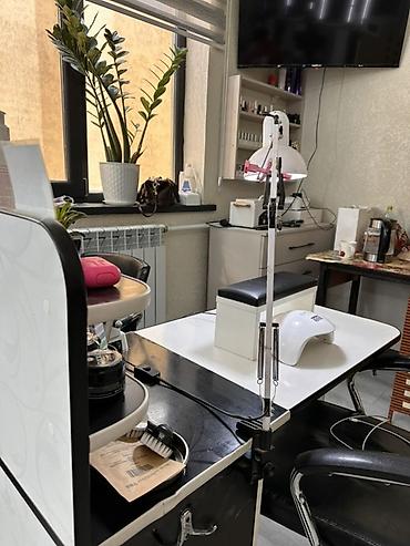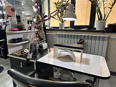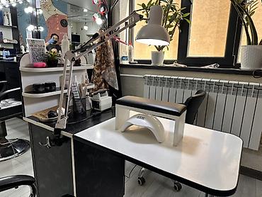 Профессиональный маникюрный стол для двух мастеров. И две полки вешающие на стену - Двухпостовой стол с широкой столешницей под мрамор. - Встроенные вытяжки на каждое рабочее место (решётки по цен...