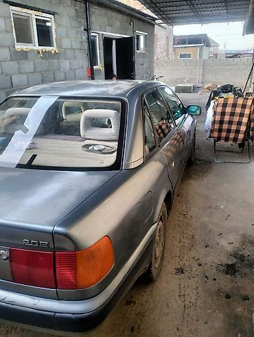 Audi 100 C4 седан, серый металлик. Атмосферный бензиновый двигатель 2.0 (надпись 2.0E на крышке багажника), передний привод. Кузов 4‑дверный, просторный салон со светлой обивкой и раздельными подголовниками сзади.