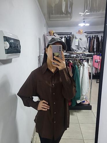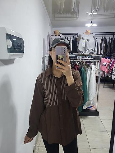 Женская рубашка под джинсы , коричневого (терракотового) цвета. XS-M подойдет - Прямой свободный крой, можно носить как легкую куртку или как рубашку - Плотная хлопковая ткань. - Минималистичный ...