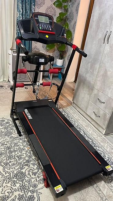 Отлично подходит для кардио дома, укрепления мышц и восстановления. Комплект: дорожка, консоль, поручни, ремень массажёра, эспандеры, кабель питания, магнитный ключ.