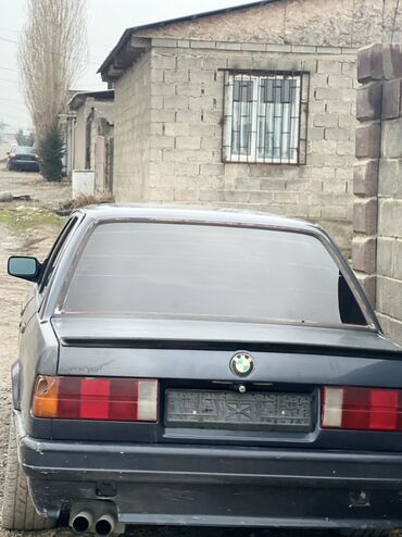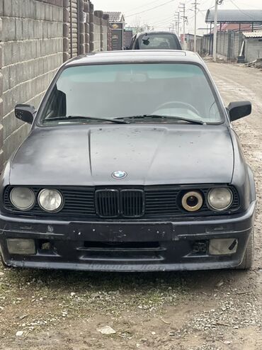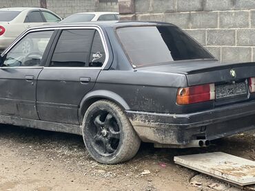 BMW 3 Series (E30) седан, матовый тёмно‑серый/чёрный цвет кузова. Классический задний привод, 4 двери.
