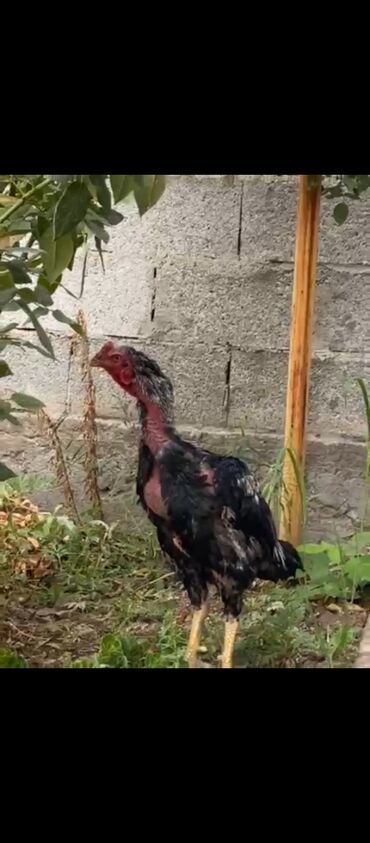 тулок 1.5 жаш, бою бийик, баасы 7000сом Петух бойцовой породы (похож на азиль/шамо) с ярко выраженной мускулатурой и вертикальной стойкой. Окрас — чёрно-рыжий с зелёным отливом на хвосте и крыльях....
