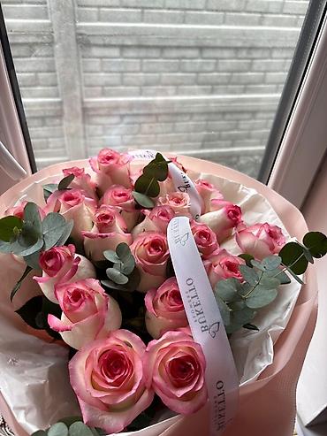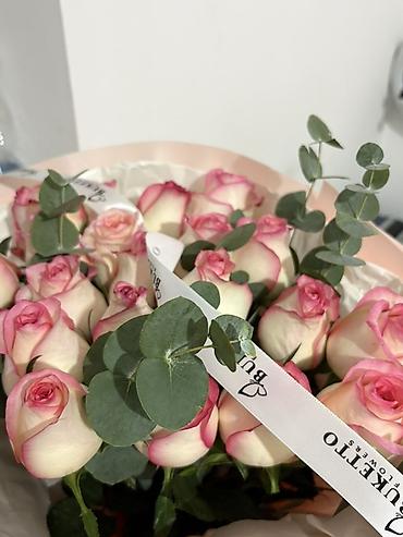 Букет из роз «bianchi/pink edge» с эвкалиптом