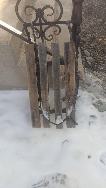 Детские санки с ручкой (несколько штук) - Классическая конструкция: полозья из металлической трубы, сиденье из деревянных реек. - Металл окрашен серой эмалью, рейки из сосны, закреплены винтами. -...