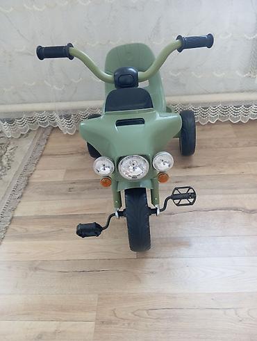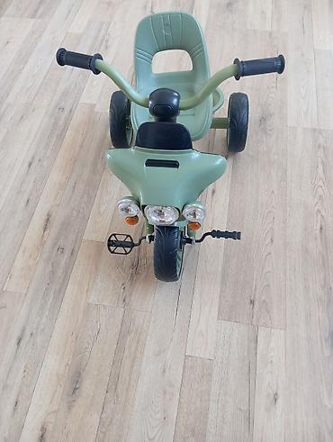 - Трицикл на крупных колесах: переднее колесо с протектором для уверенного сцепления, два задних устойчивых колеса.