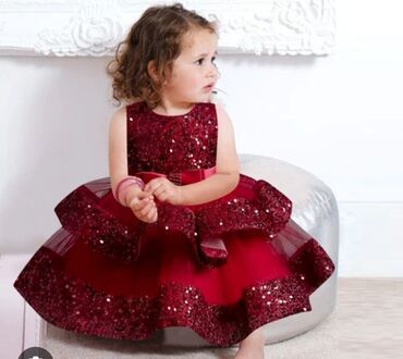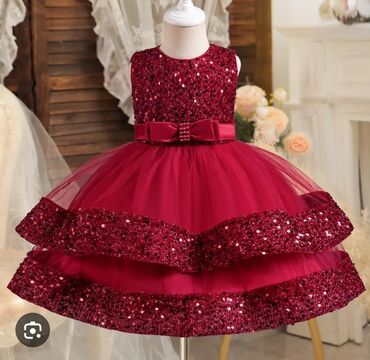 Нарядное детское платье бордового цвета. - Верх: кружевной корсет с расшивкой бусинами и стразами, короткие ажурные рукава. - Талия: атласный пояс с декоративным цветком. - Юбка: многослойный фати...