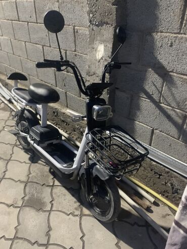Электрический скутер-байк с педалями и корзиной Характеристики и оснащение: - Привод: электромотор в заднем колесе (hub motor) - Питание: съемный аккумуляторный блок, расположен под сиденьем; быст...