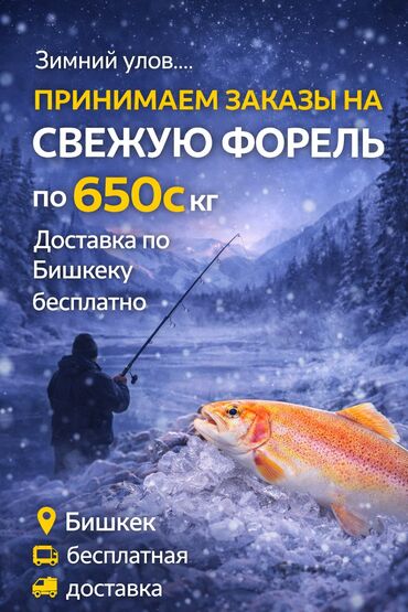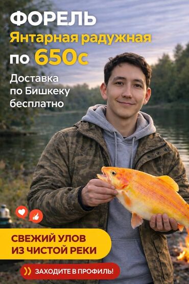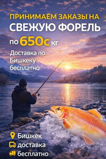 🐟 Продаётся свежая форель — Бишкек Форель живая / свежий вылов,выращена на Аллере ,около 2.5-3 тонн. Отличное качество, чистая, без запаха. Подходит для ресторанов, магазинов и частных покупателей....