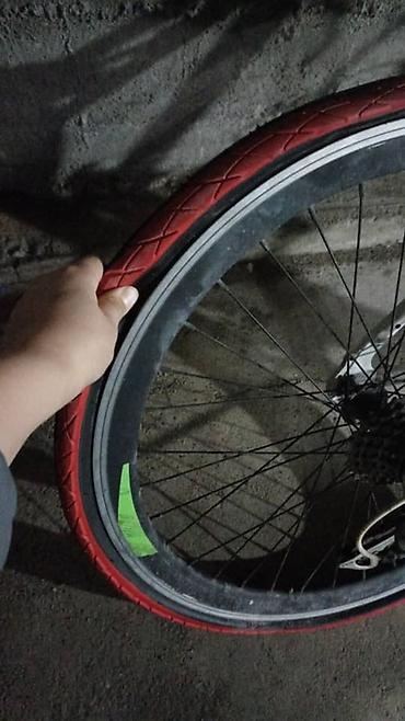 - Колеса 700C: заднее обод/покрышка с красным бортом, переднее — черный обод.
