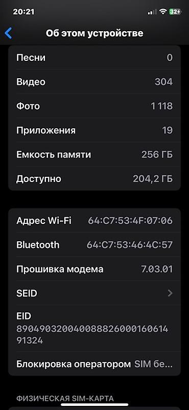 - Память: 256 ГБ (доступно ~204,2 ГБ)