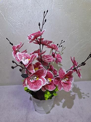 Декоративные цветы ручной работы в горшочках - Композиции из мягких плюшевых (пушистых) проволочных шнуров: реалистичные орхидеи и тюльпаны в бутоне. - Каждая ветка и лист созданы вручную, лепестк...