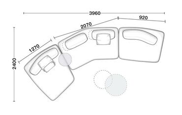 Угловой модульный диван с высоким подголовником и широкими подлокотниками-столешницами - Конфигурация: Г‑образный, состоит из нескольких модулей; возможна перестановка секций для правого/левого уг...