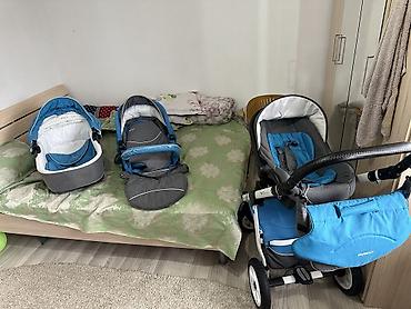 Детская коляска-трансформер 2 в1 и коляска автокресло цвет изумрудный. За все 30000 сомом вот сап на этом номере, есть торг. Коляска б/у не новая и авто коляска не Dona. Пишите если заинтересован...