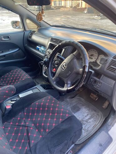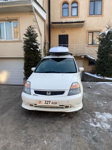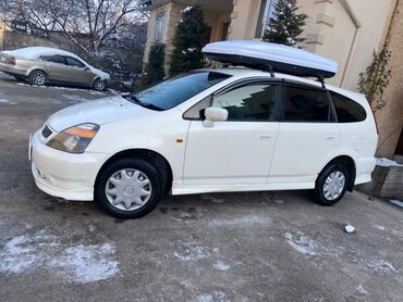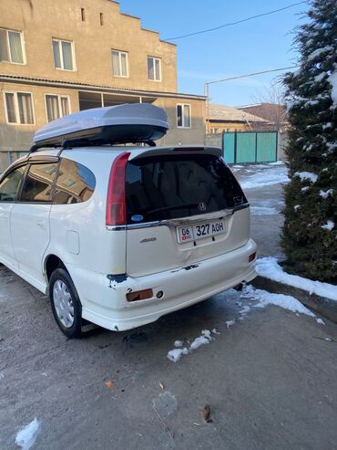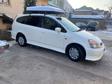 Honda Stream (правый руль), 7‑местный компактвэн в белом цвете.
