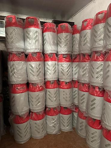 - Объем/варианты: представлены баллоны цилиндрической формы с красной верхней крышкой и светло‑серым корпусом; доступны разные литражи (визуально — средние и крупные модели).