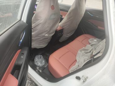 - Интерьер с двухцветной отделкой: сиденья и панели в оттенке терракоты, контрастные вставки.