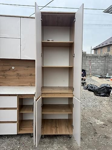 Кухонный буфет/гарнитур с верхними и нижними шкафами и рабочей столешницей. Ширина 1метр,высота 1.9 метра Особенности: - Комплект: три распашных верхних шкафа, открытые полки-ниши, нижняя тумба с т...