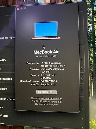 Apple MacBook Air 13" (M1, 2020) — серебристый Характеристики: - Чип: Apple M1 - ОЗУ: 8 ГБ - Накопитель: 256 ГБ SSD - Дисплей: Retina, 2560×1600 - Клавиатура: с подсветкой - Порты: 2× Thunderbolt...