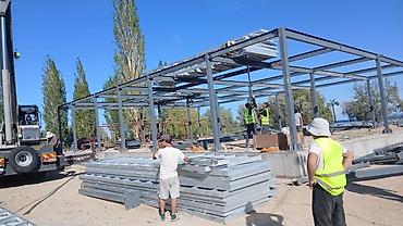 Предлагается модульное здание с металлическим каркасом и обшивкой из