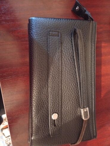 Размеры ориентировочно: формат около A5; помещаются смартфон, ключи, документы и наличные. Цвет: черный. Материал: натуральная/эко‑кожа с тиснением под зерно.