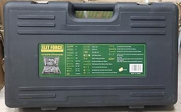 На задней стороне кейса приведена спецификация; общий комплект — 128 предметов. Производство: China. Марка: ELIT FORCE Professional Tools.