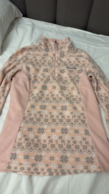 3) Флиска с горловиной на молнию 1/2, розовая с узором: