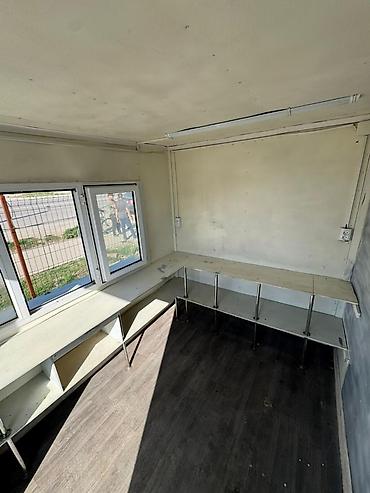 - Внутри установлен прилавок/рабочая столешница с открытыми нишами и дополнительной полкой по периметру.