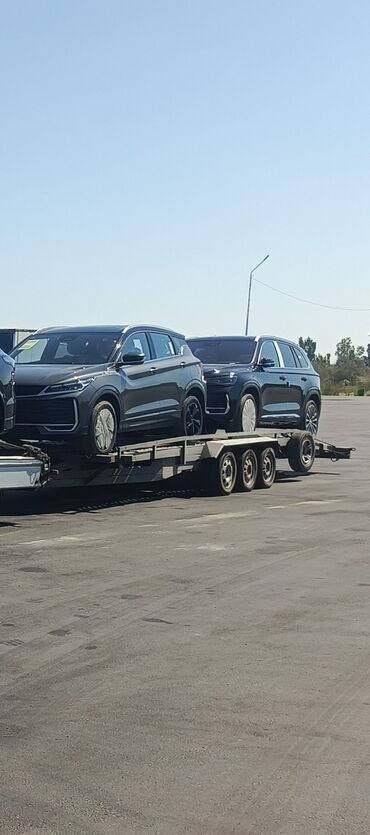 Самосвальный полуприцеп Тонар (синего цвета), трехосный. Основные характеристики по фото: - Кузов полукруглый стальной, рассчитан на перевозку сыпучих и инертных материалов (песок, щебень, грунт, ...