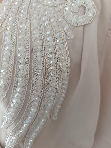 - Декор на плечах: вышивка и россыпь прозрачных мерцающих бусин.