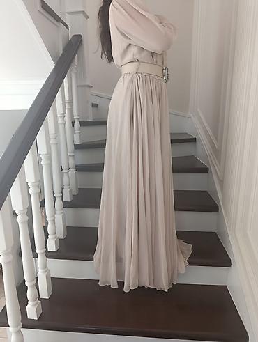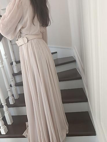 - Свободный, летящий силуэт, мягкие складки по всей длине.