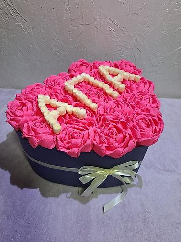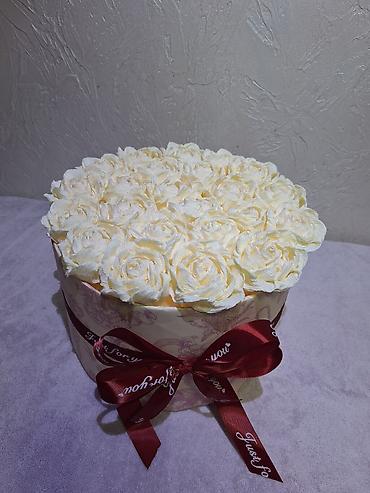 Букет из роз в нежной пастельной гамме - Состав: крупный монобукет из роз двух оттенков — пудрово‑розовые и кремовые. - Количество: около 51–55 бутонов (плотная «шапка» круглой формы). - Оформлени...