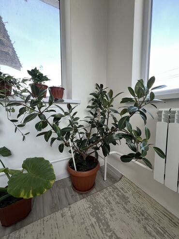 Разные комнатные цветы. 1.Фикус Бенджамина пестролистный. В горшке несколько переплетенных стволов. Высота с горшком 43см. Цена 1450с 2.Спатифиллум (женское счастье). Высота 45см (с белым горшком)...