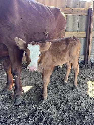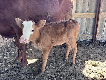- Мать — рыжая корова мясного типа (на фото рядом), телёнок хорошо развивается.