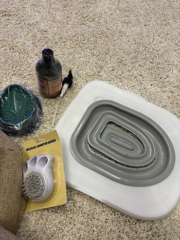 Также в подарок отдам лоток для приучения к унитазу. Большой гель для умывания для кошек. Щетка 2в1. моет и вычесывает шерсть.