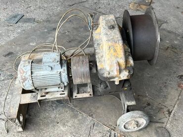 Электрическая лебедка с тросом Описание: - Промышленная электрическая лебедка на стационарном основании - Электродвигатель с редуктором, привод барабана - Стальной канат намотан на барабан, выведе...