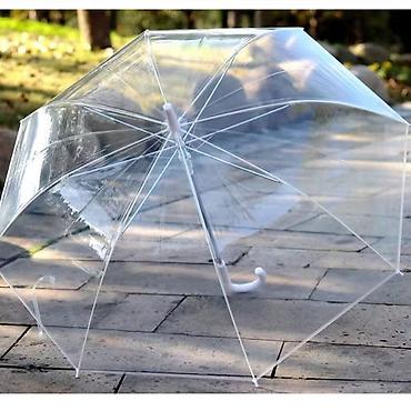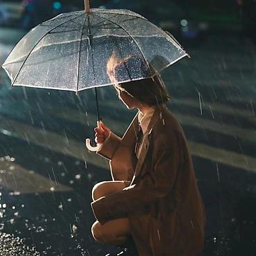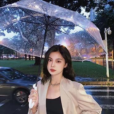 Лаконичный прозрачный зонт, который сочетает функциональность и стиль и не перекрывает лицо и прическу под дождем.