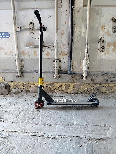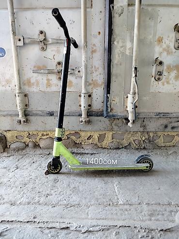 уступлю до 850 сом Трюковой самокат - Материал: металлическая рама и дека, усиленная в зоне рулевой колонки. - Руль: Т-образный, стальной, с фиксацией на четырехболтовом хомуте (анодированный зол...