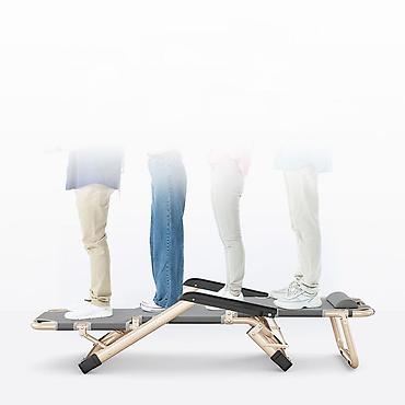 - Прочная складная рама из металла с усиленными шарнирами; устойчивые опоры с накладками против скольжения.