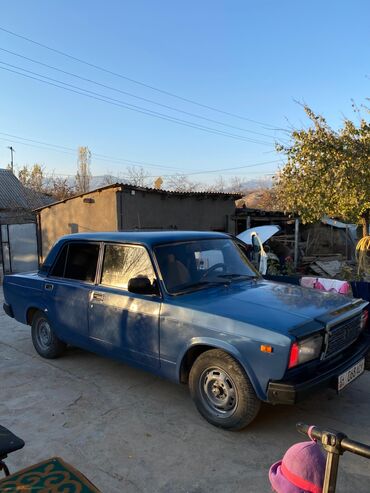 Матор май жебейт ходовой жакшы каропка жакшы мост жакшы вложение по мелочам тяга пушка лед фара буфер зима балон акустика мощный ВАЗ 2107, синий седан классической компоновки.