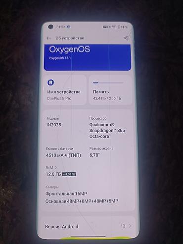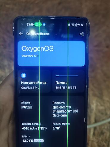 OnePlus 8 (модель IN2015) Основные характеристики: - ОС: OxygenOS 13.1 - Память: 256 ГБ (доступно ~29,4 ГБ занято из 256 ГБ) - Процессор: Qualcomm Snapdragon 865, 8 ядер - Экран: - Аккумулятор: 4...