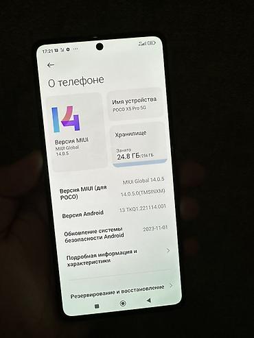 Poco X5 Pro 5G, Б/у, 256 ГБ, цвет - Голубой, 2 SIM