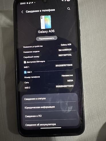 - Интерфейс One UI, раздел «Сведения о телефоне» подтверждает модель Galaxy A06.