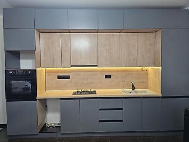Кухонные гарнитуры на заказ в современном минималистичном стиле. Особенности: - Прямые линейные компоновки с верхними шкафами до потолка для максимального хранения. - Фасады без ручек (push-to-ope...