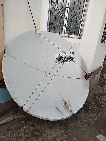 - Большая офсетная тарелка многосекционной конструкции (металл), диаметр около 1,8–2,4 м — подходит для приема слабых спутниковых сигналов и мультиспутниковых установок.