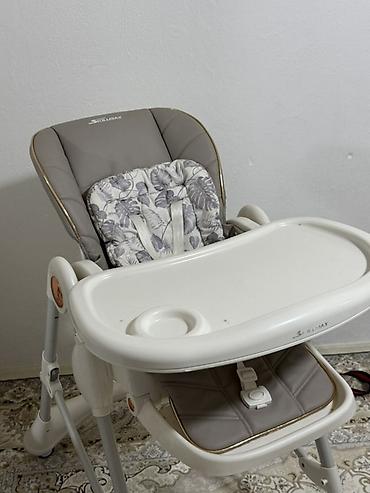 Цвет: серо-бежевый с белыми элементами. Подходит для детей, которые уже сидят самостоятельно.