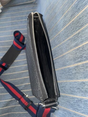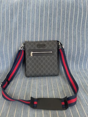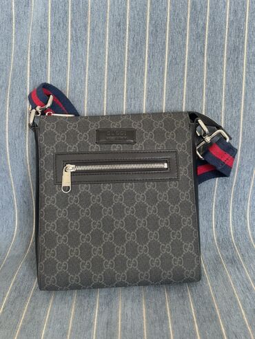 - Материал: фирменное полотно GG Supreme темно‑серого цвета с кожаными элементами