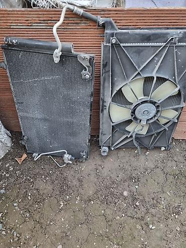 - На фото также радиаторный модуль: радиатор охлаждения с диффузором и вентилятором, радиатор кондиционера с трубками/фитингами.
