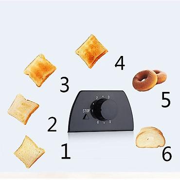 - Механический регулятор с 6 уровнями поджаривания — от легкого румянца до хрустящей корочки. Кнопка STOP для мгновенной остановки цикла.